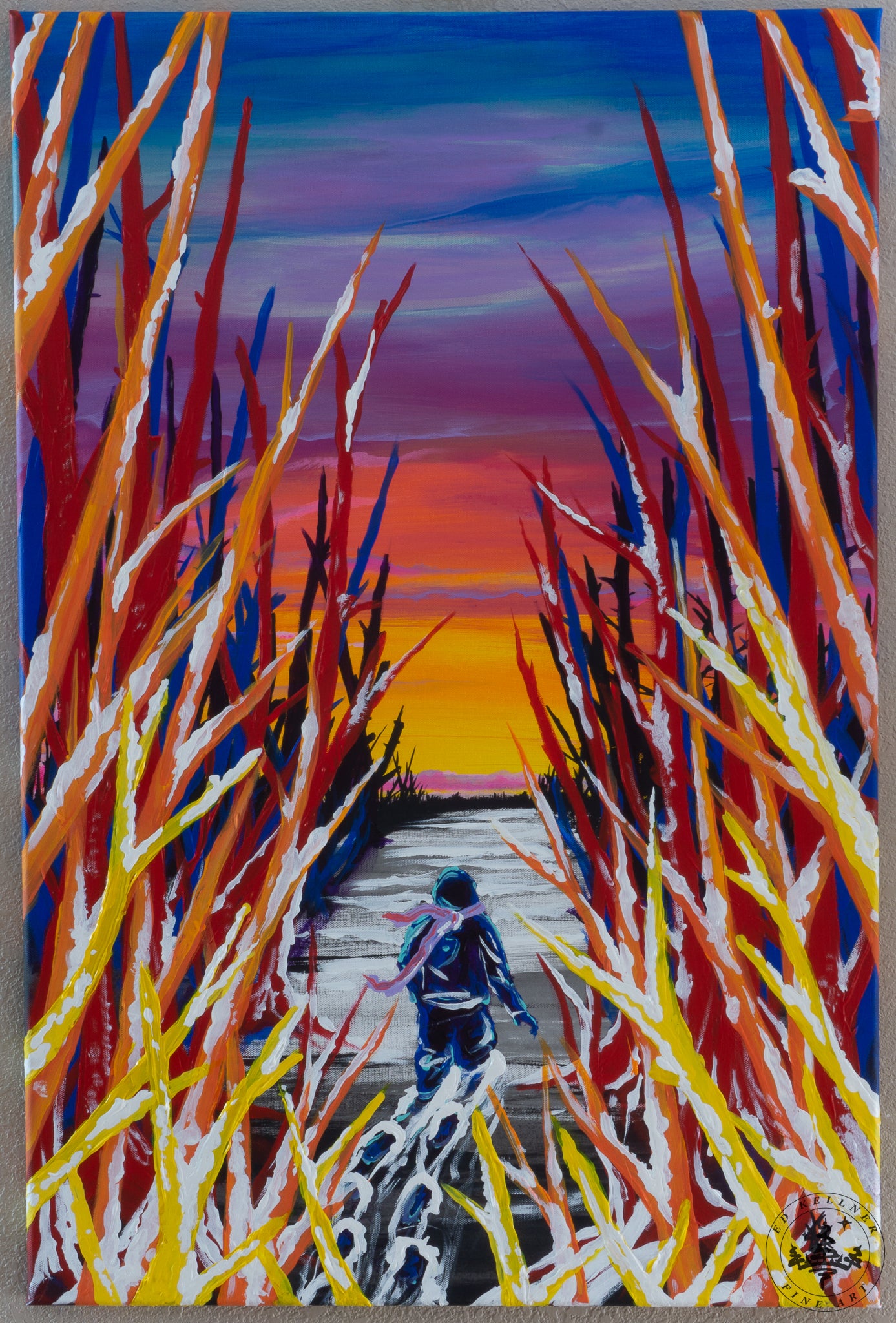 Original acrylic painting by Ed Kellner. Canvas measures 24 inches x 36 inches and is sealed for protection. Certificate of Authenticity included. Taxes and shipping are included in the price.