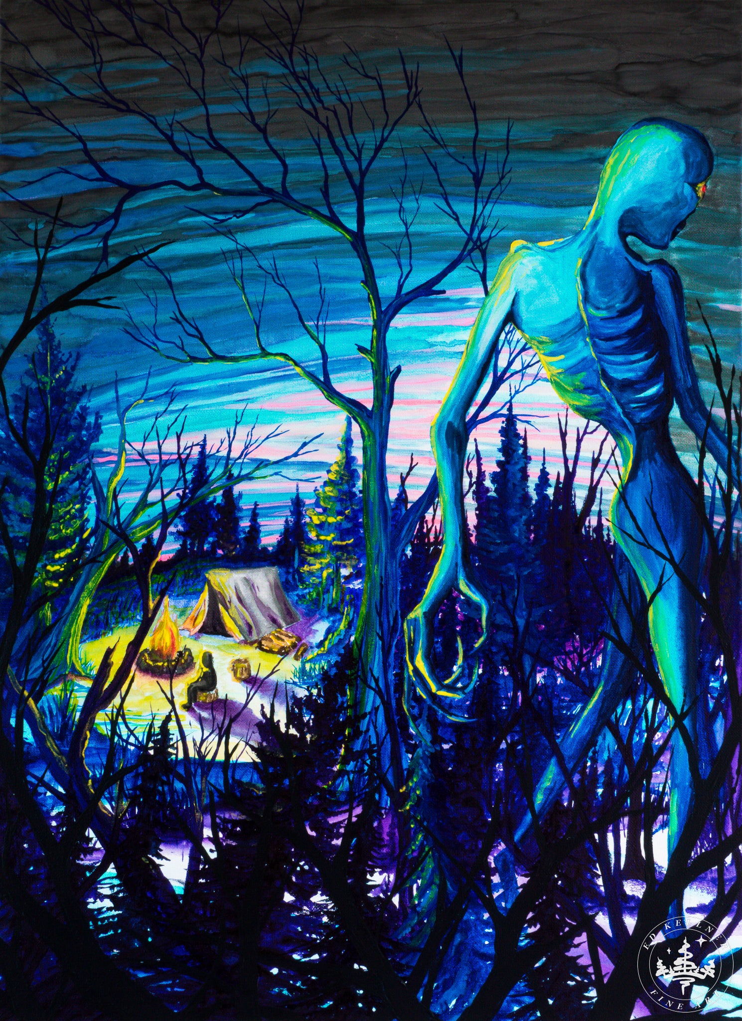 "Wiidigoo" print beautifully captures my original artwork of watercolor and acrylic on stretched canvas. This gorgeous, archival-quality print is made in-house using heavyweight (300gsm/22.5mil) fine art paper with pigment ink. Your print will be signed and numbered and includes a certificate of authenticity. All prints ship in a plastic, archival sleeve for protection. This offering is limited to ten (10) prints, after which it will be retired.